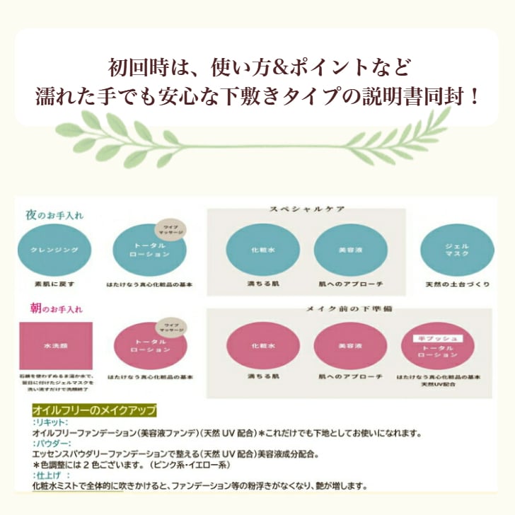 トライアルセット ~ クレンジング・トータルローション・ジェルマスク・専用スポンジ ~ 〔約7~10日間分〕 はたけなう真心化粧品の基礎セットを約1週間分サイズでご用意いたしました! まずは、トライアルサイズでお試してみたい方! また、旅行などの持ち運びにも便利なサイズです。 ~はたけなう真心化粧品で使用しているお水は、沖縄の3種類の月桃(ゲットウ)蒸留水と能登半島のお水を基礎とし製品内容に合わせそれぞれ天然由来の素晴らしい成分を組み合わせ個性豊かに作成しております~ 1 クレンジング 50ml アミノ酸系の洗浄成分で、肌に余分なポリマー・シリコン不使用。 やさしく、すっきり、素肌に戻す。 *ナチュラルグリーンソルトを一つまみ入れて洗うと、角質ケアできます! 2 トータルローション 50ml 基本 専用パフで優しくふき取り♪(ワイプマッサージ) 肌を保湿しながら不要な汚れだけをOFF 保湿・補水・潤いに 3 ジェルマスク 50ml ナイトケア ジェルマスクで膜を張り、寝ている間に集中補修➡ご自身の汗と脂が混ざりリペア補修。 天然の土台作りを。 翌朝は、ぬるま湯で軽く流すだけで、朝洗顔は終了♪ 4 スポンジ ×1枚〔ワイプマッサージ用〕 トータルローションで使用する、スポンジパフ付き。 専用スポンジパフでワイプマッサージをすることで、鏡の様な輝きの肌を目指します。 ※使用方法は説明下敷きをお付けいたしますので参考にご利用ください。 < はたけなう真心化粧品がご提案するスキンケア > 『自身脂』= 天然クリーム はたけなうでは、皮脂膜のことを自身脂(じしんあぶら)と呼んでいます。 自分の肌から出てくる、汗と油が混ざったヴェールが自身脂になります。 植物の保湿の力で、健やかに整った肌に。 お肌と共生&インタラクティブ 夜にお肌にたっぷり水分でリペア補修しましょう ・夜・クレンジング→ローション→〔化粧水→美容液〕?最後に使います。 ・はたけなう真心のクレンジングとライン使いでニキビ予防! ・地肌の保湿&頭髪ワックスの代わりにもなる ・日焼けによるシミ・ソバカスを防ぐ。 ・お肌を引き締める収斂成分を配合。 ・環境ダメージから肌を守る。 ※トータルローションには、グルコシルルチン(αGルチンPS-C)配合※ 「はたけなう真心化粧品」では、エンジュの花蕾(つぼみ)から得られる天然成分「αGルチンPS-C」を配合しています。 自然界では、植物が紫外線から種子のDNAを守るために、果実に成分を蓄えることが知られています。特に標高が高く紫外線量の多い地域に生息する韃靼そばには、豊富なルチンが含まれており、その自然の知恵を活かして開発されたのが「αGルチンPS-C」です。 この成分は、水溶性が高いため肌になじみやすく、うるおいをキープしながら肌を健やかに整えます。毎日のスキンケアに取り入れることで、日差しを浴びた日の肌をやさしくいたわり、みずみずしい印象へと導きます。 自然の力をヒトへ応用した「αGルチンPS-C」を配合した化粧品で、毎日のお手入れをもっと心地よく、充実したものにしませんか?