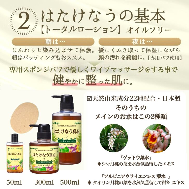 【送料無料ポスト投函】お試しサイズ 2番 【トータルローション 50ml +専用スポンジパフ1枚】〔基本ケア〕お試し&持ち運びサイズ