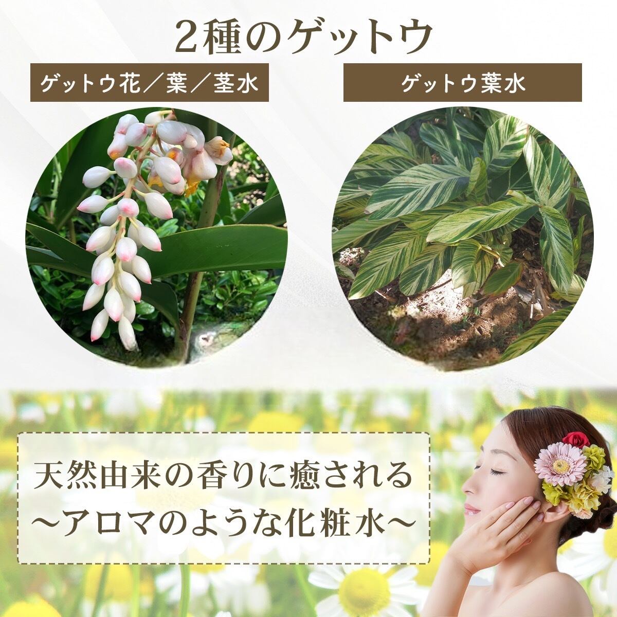 はたけなう真心化粧品で使用しているお水は、沖縄の3種類の月桃(ゲットウ)蒸留水と能登半島のお水を基礎とし製品内容に合わせそれぞれ天然由来の素晴らしい成分を組み合わせ個性豊かに作成しております